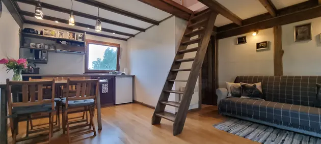 Ļaujieties romantiskai atpūtai Kuldīgas vecpilsētas sirdī, tieši blakus pils dārzam. Sāciet rītus ar kafiju uz terases, baudot brīnišķīgo skatu uz Ventas rumbu. Viesu ērtībām pieejama virtuve, bezmaksas internets un autostāvvieta. Mīļi gaidīti arī jūsu mājdzīvnieki.
